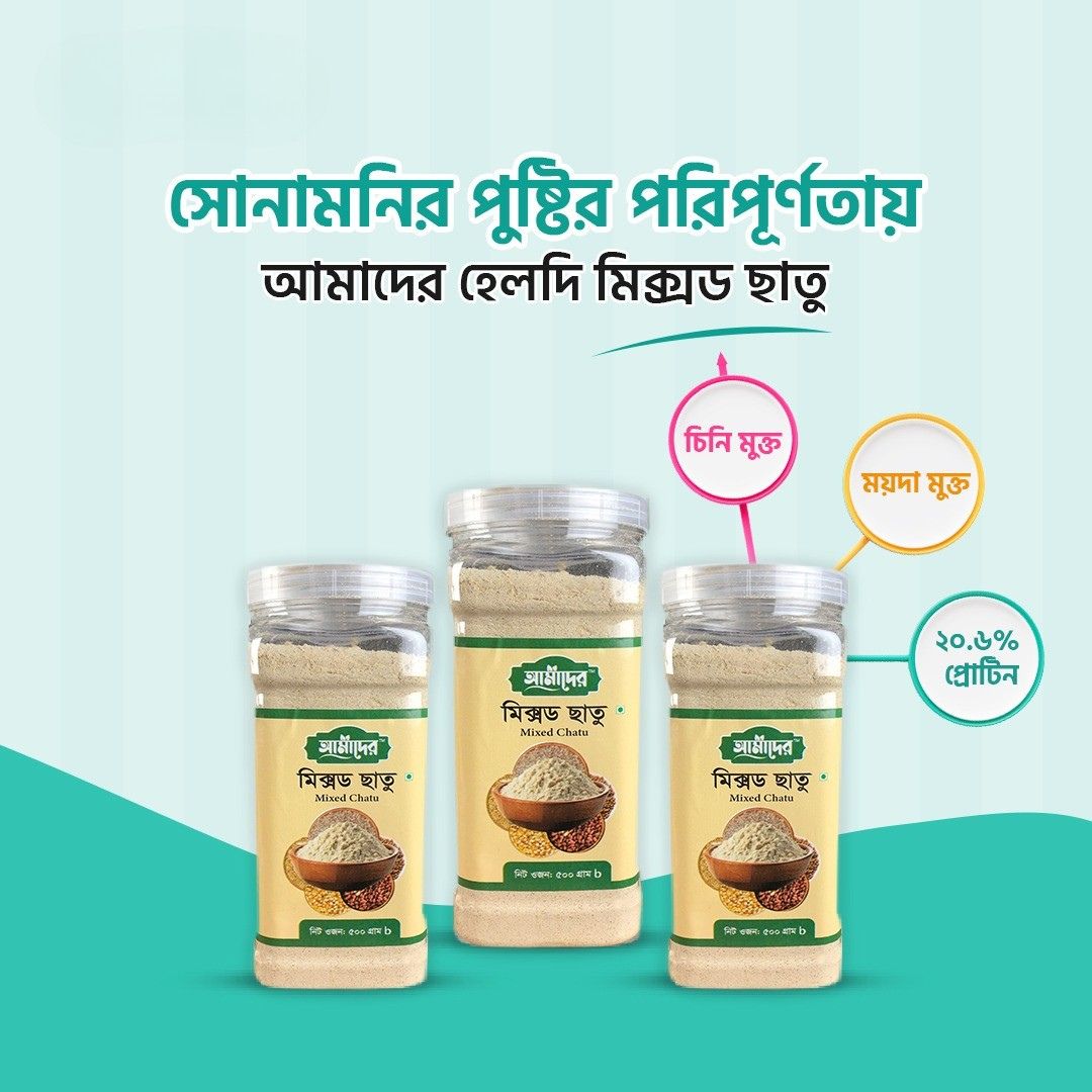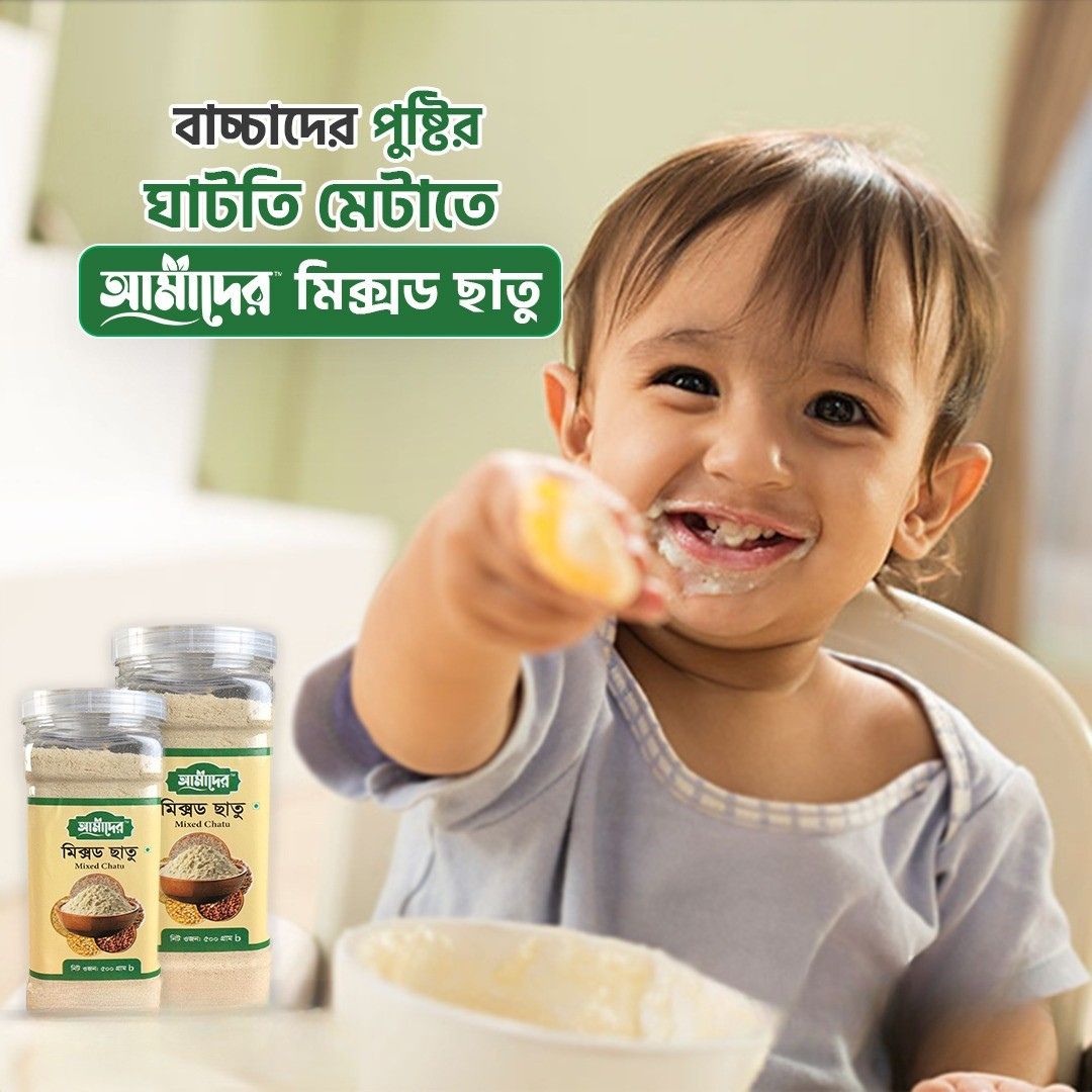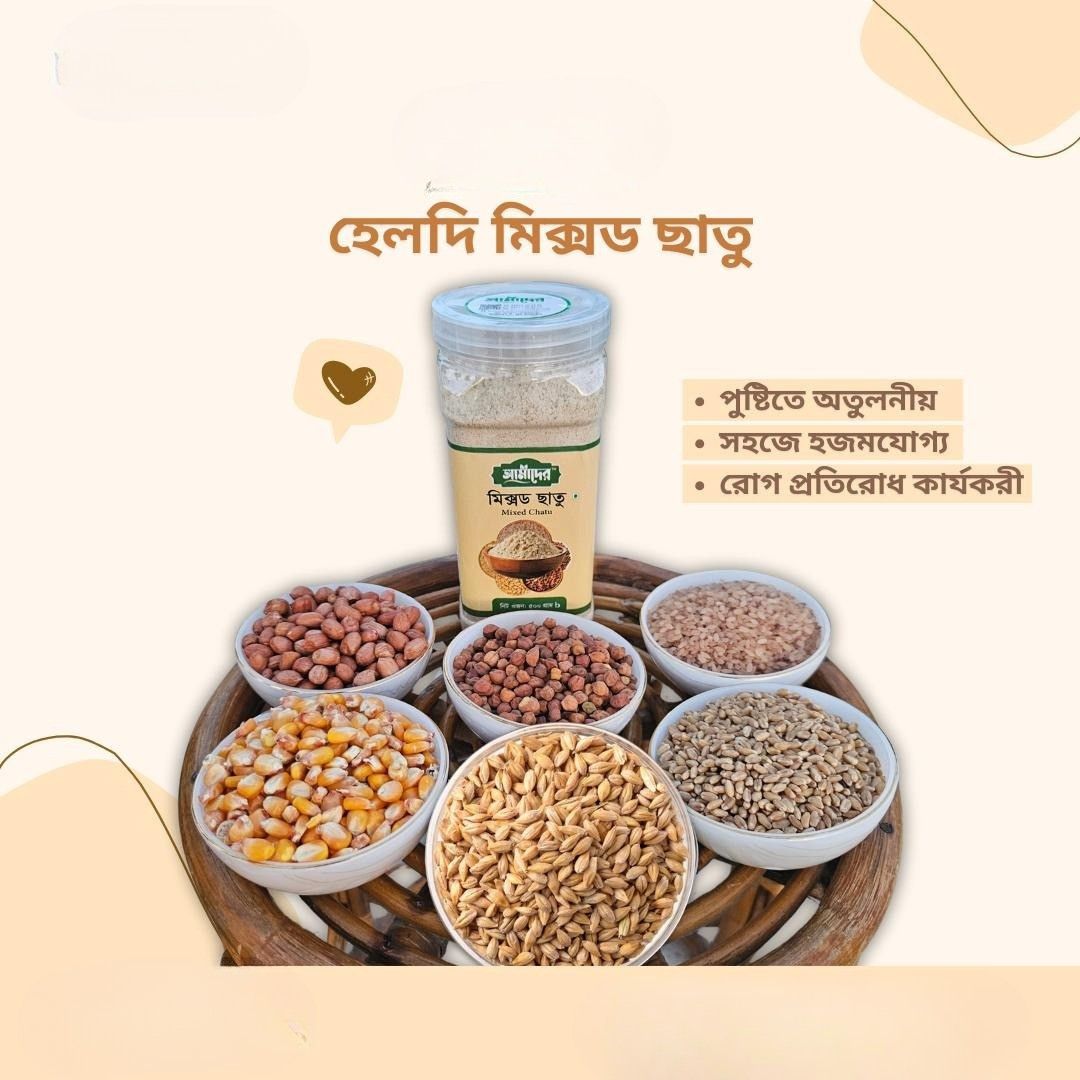 ছাতু আমাদের দেশের অতি প্রাচিন একটি খাবার। আগের দিনে মেহমানদারি করার জন্য এবং বিকেলে নাশতার জন্য ছাতু ব্যবহার করা হত। বিভিন্ন ধরণের দানাদার শস্যের মিশ্রণে তৈরি আমাদের মিক্সড ছাতু, আপনারও আপনার সন্তানের প্রতিদিনের পুষ্টির চাহিদা পূরণে সহায়ক। বিশেষ করে বাচ্চাদের জন্য মিক্সড ছাতু খুবই উপকারী। হরলিক্স এর বিকল্প হিসেবে আপনি আপনার বাচ্চাকে মিক্সড ছাতু খাওয়াতে পারেন ।